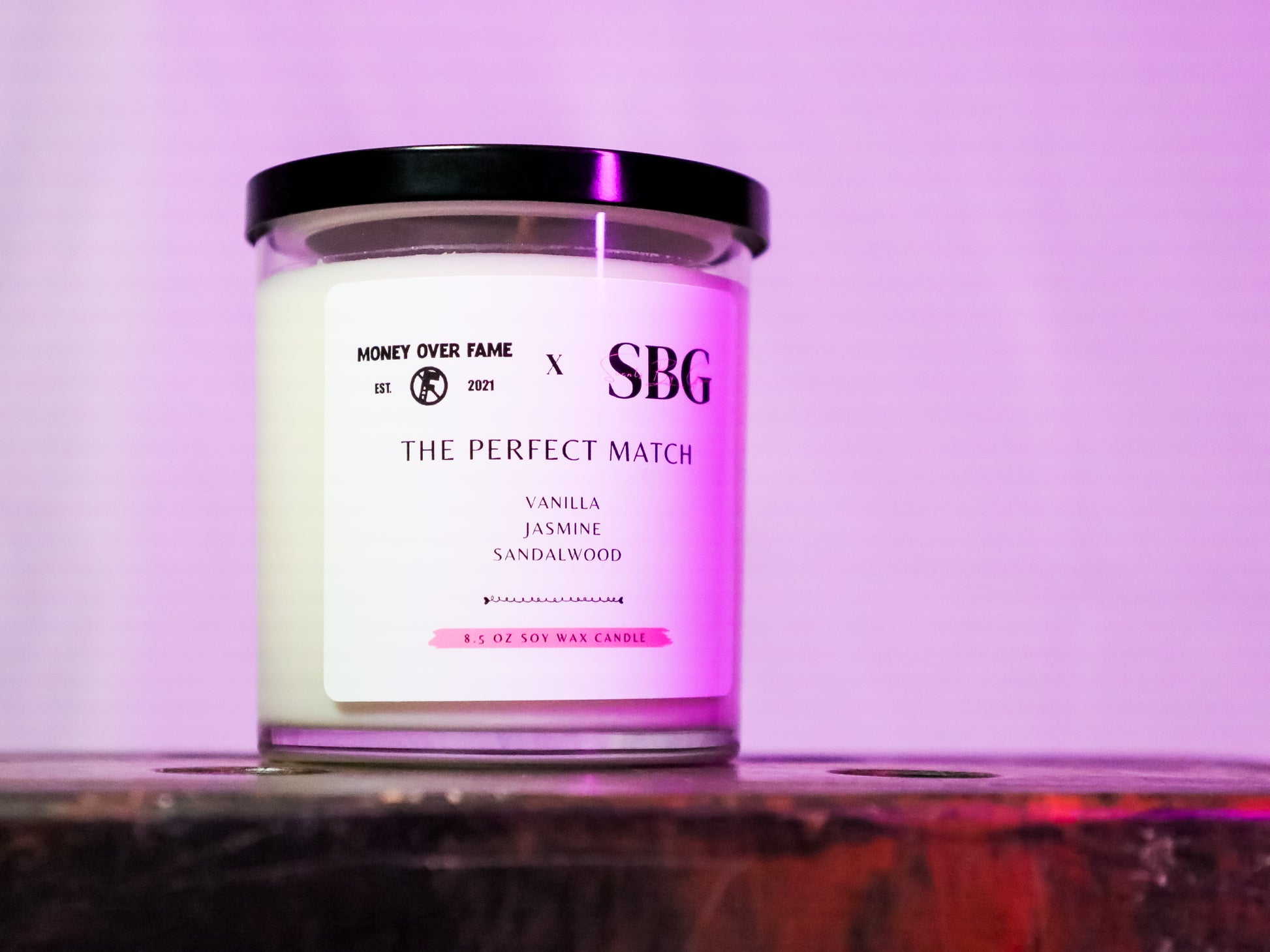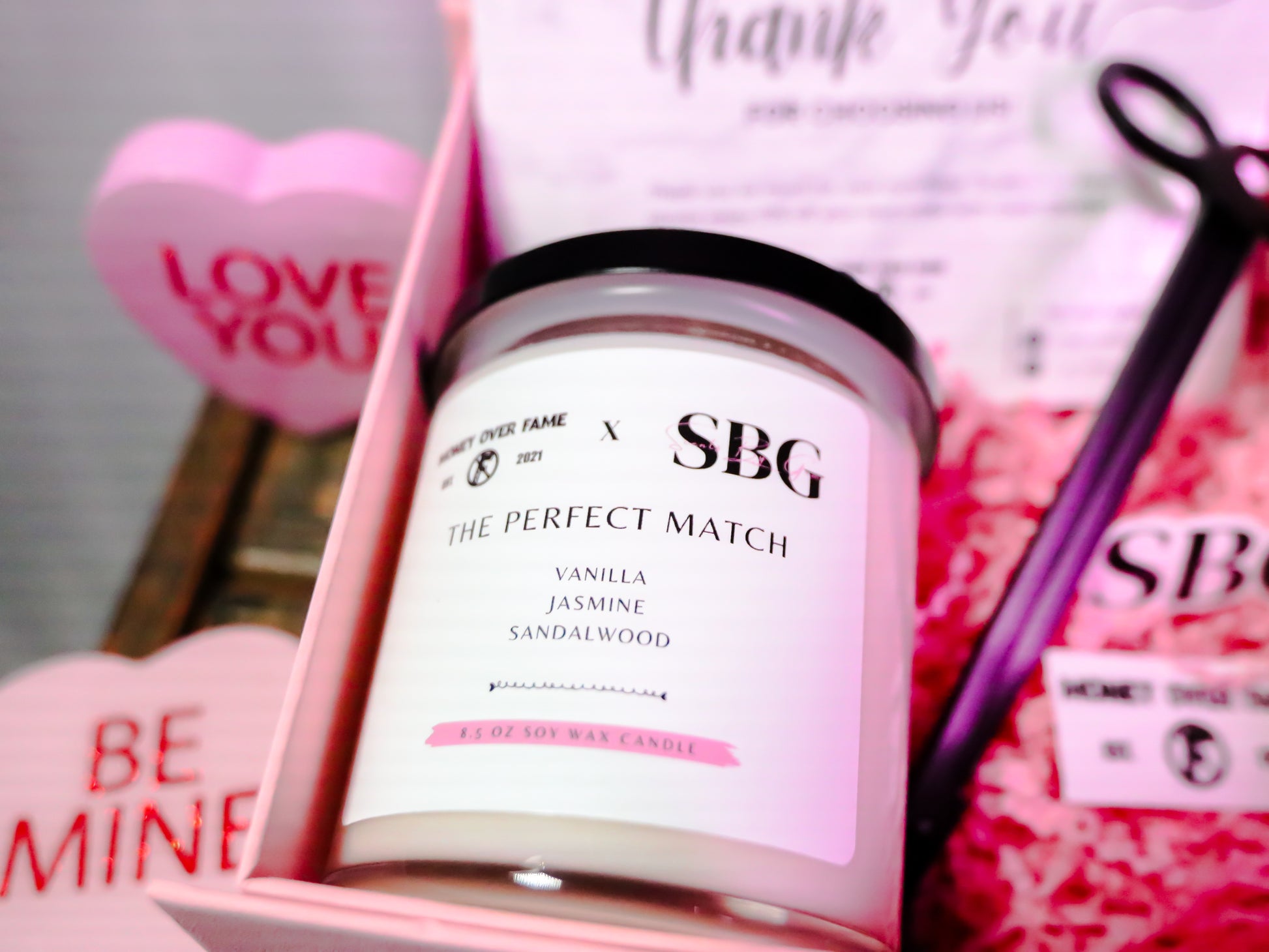 Experience a warm and inviting candle with The Perfect Match, part of a limited-edition Valentine’s Day candle in collaboration with Money Over Fame.